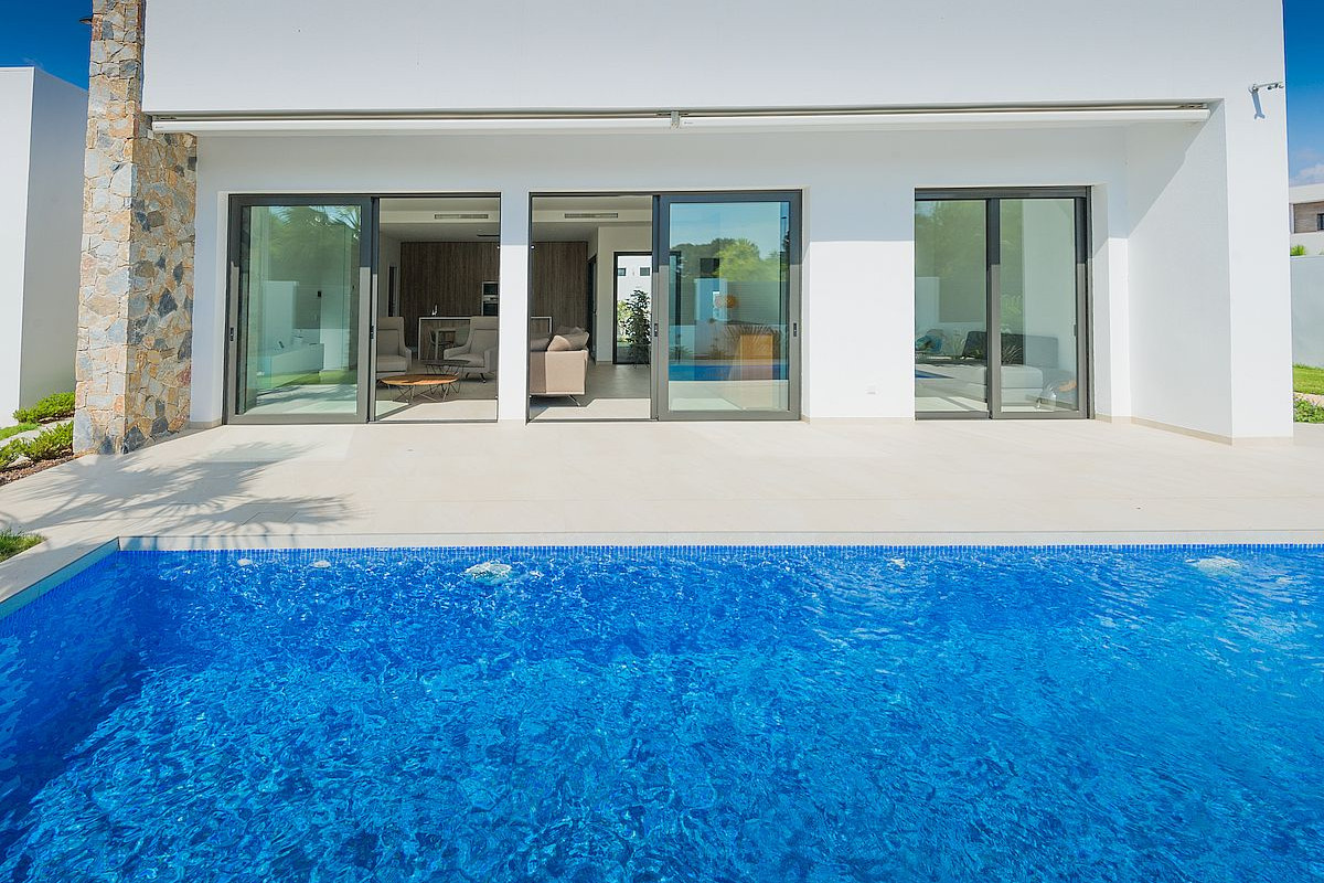 Alejandra XI - El Recuerdo villas are equipped with porcelain flooring, fitted and equipped kitchen, ducted air conditioning, aluminum windows with motorized blinds and sun protection, and LED lighting, among others.
