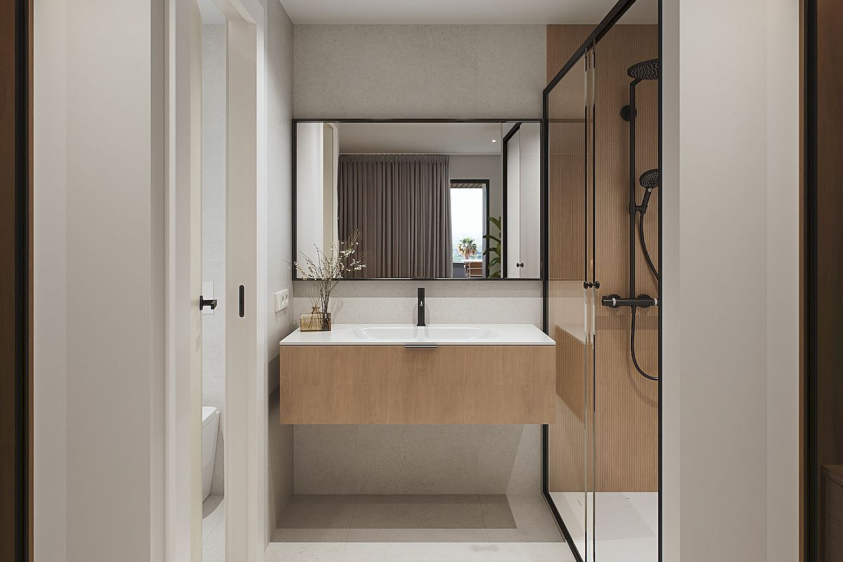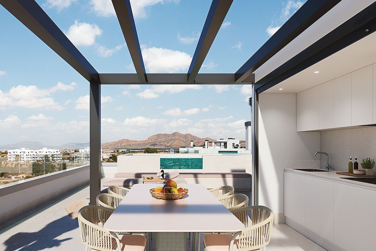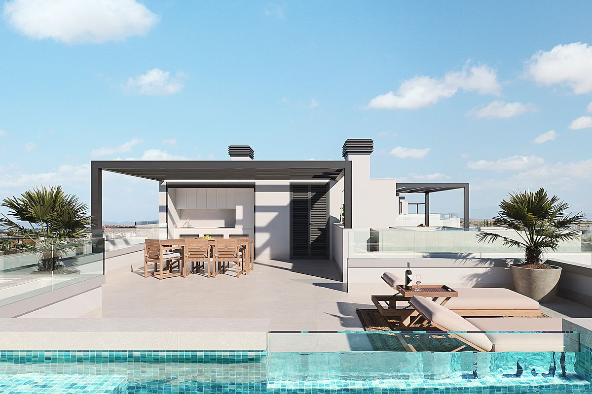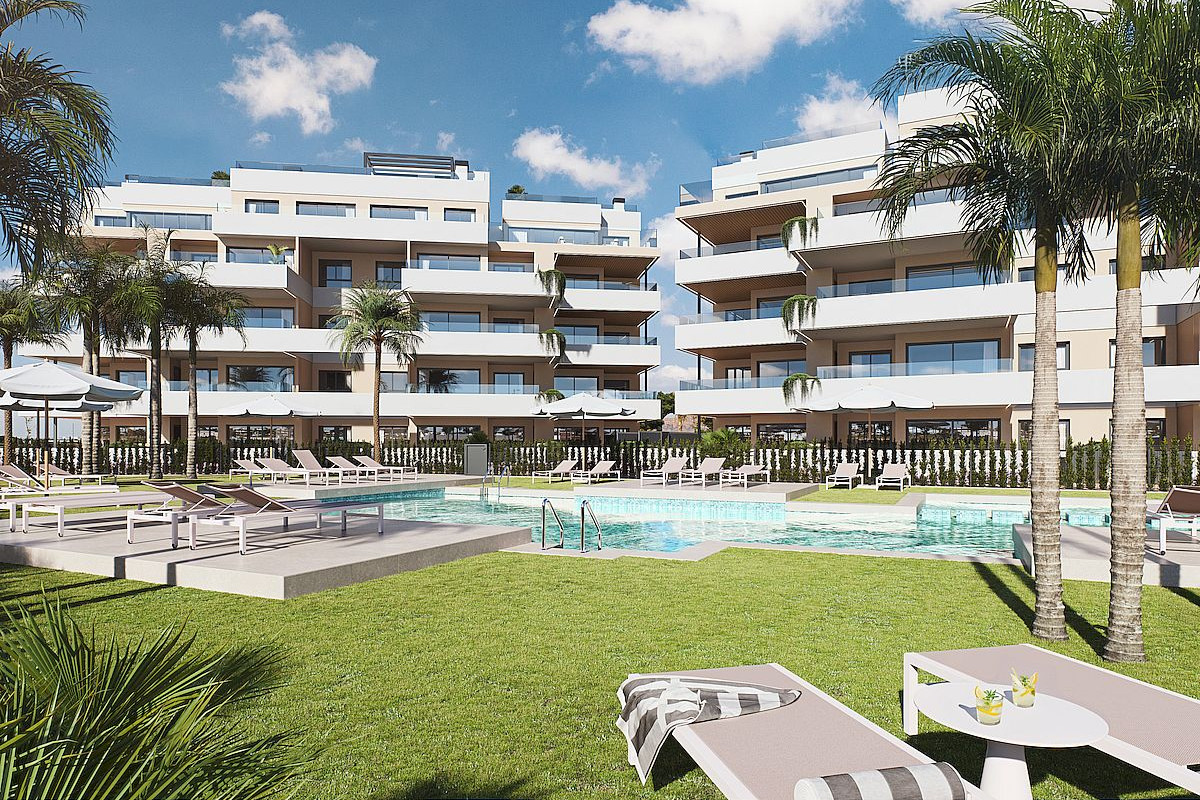 The project includes luxury apartments (two and three bedrooms), and magnificent penthouses, all with underground parking and storage room and the buildings are thoughtfully positioned with west-facing orientations. The upper floors enjoy beautiful views over the lake. Ground floor apartments with private garden, middle floors with large terraces and penthouses includes amazing solariums with swimming pool and outdoor kitchen. All properties with American kitchen integrated in the living room, with modern and functional design and large terraces overlooking the green areas.